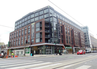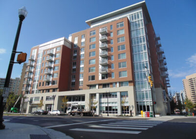Eleven-story building with 198 residential units. Rough, Finish, and Millwork Carpentry. Doors, Frames, and Hardware. Interior Unit and Amenity Trims. Garage Ductwork FyreWrap. Division 10 Specialties. Bathroom Accessories. Closet Shelving. Shower Doors. Landscaping Carpentry. Exterior Fences. Temporary Construction Carpentry. Final Cleaning.