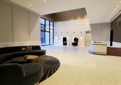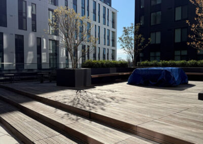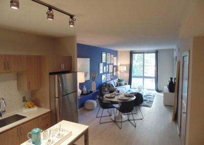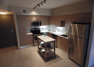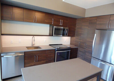 Fourteen-story building with 264 residential units. Rough and Finish Carpentry. Doors, Frames, and Hardware. Interior Unit and Amenity Trims. Division 10 Specialties. Bathroom Accessories. Closet Shelving. Shower Doors. Landscaping Carpentry. Decking. Exterior Screens and Benches. Temporary Construction Carpentry.