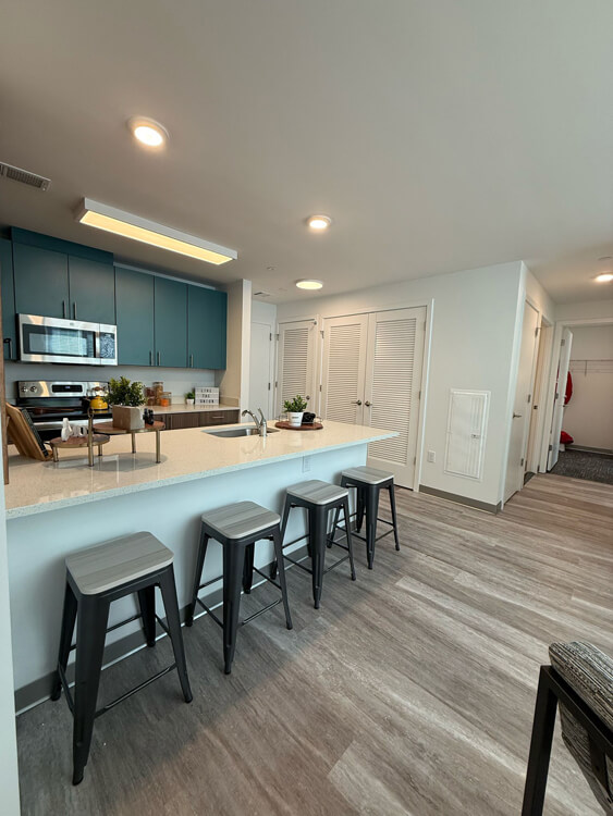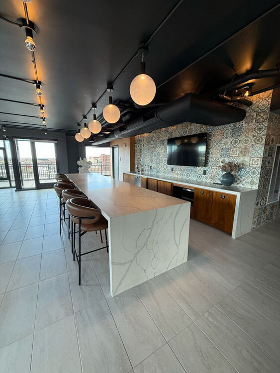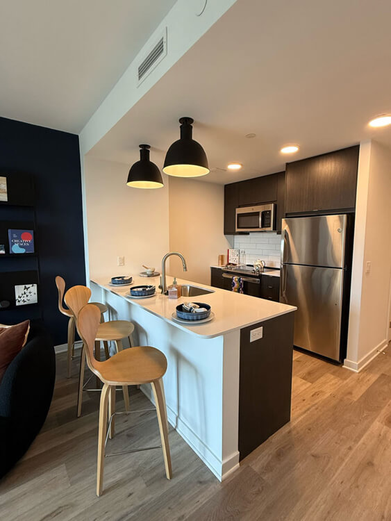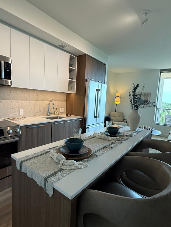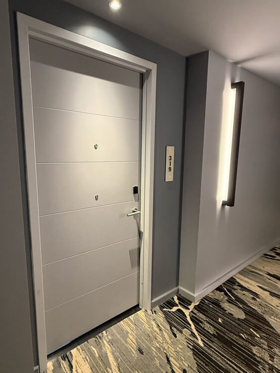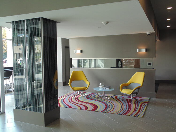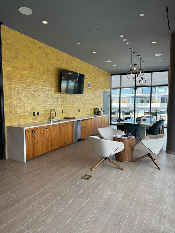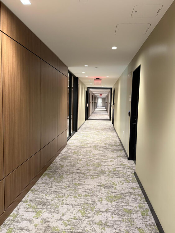 Eleven-story building with 198 residential units. Rough, Finish, and Millwork Carpentry. Doors, Frames, and Hardware. Interior Unit and Amenity Trims. Garage Ductwork FyreWrap. Division 10 Specialties. Bathroom Accessories. Closet Shelving. Shower Doors. Landscaping Carpentry. Exterior Fences. Temporary Construction Carpentry. Final Cleaning.