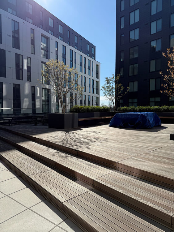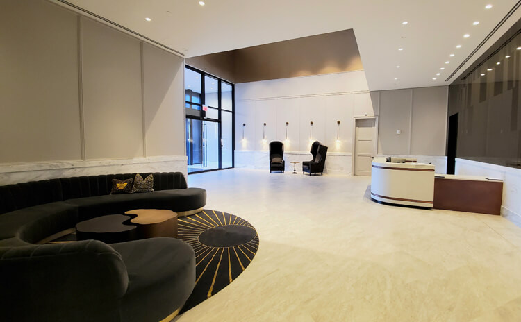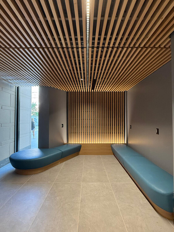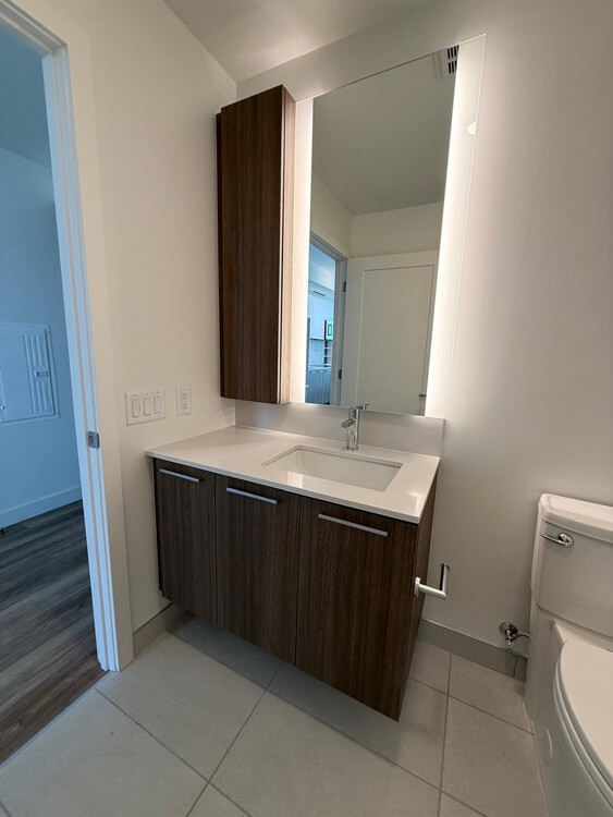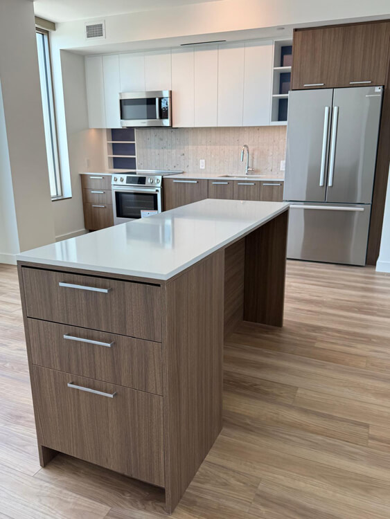 Fourteen-story building with 264 residential units. Rough and Finish Carpentry. Doors, Frames, and Hardware. Interior Unit and Amenity Trims. Division 10 Specialties. Bathroom Accessories. Closet Shelving. Shower Doors. Landscaping Carpentry. Decking. Exterior Screens and Benches. Temporary Construction Carpentry.